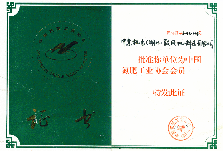 中國氮肥(fei)行(xing)業會員(yuan)證書(shu)